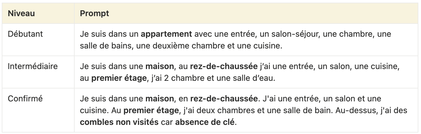 1. Enoncez l'espace à ajouter et le niveau dans lequel se trouve cette espace (si votre projet comporte plusieurs niveaux)